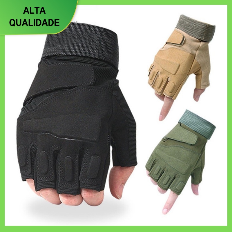 Luvas táticas antiderrapantes com tela de toque rígida para motocicleta luvas masculinas com meio dedo de combate militar