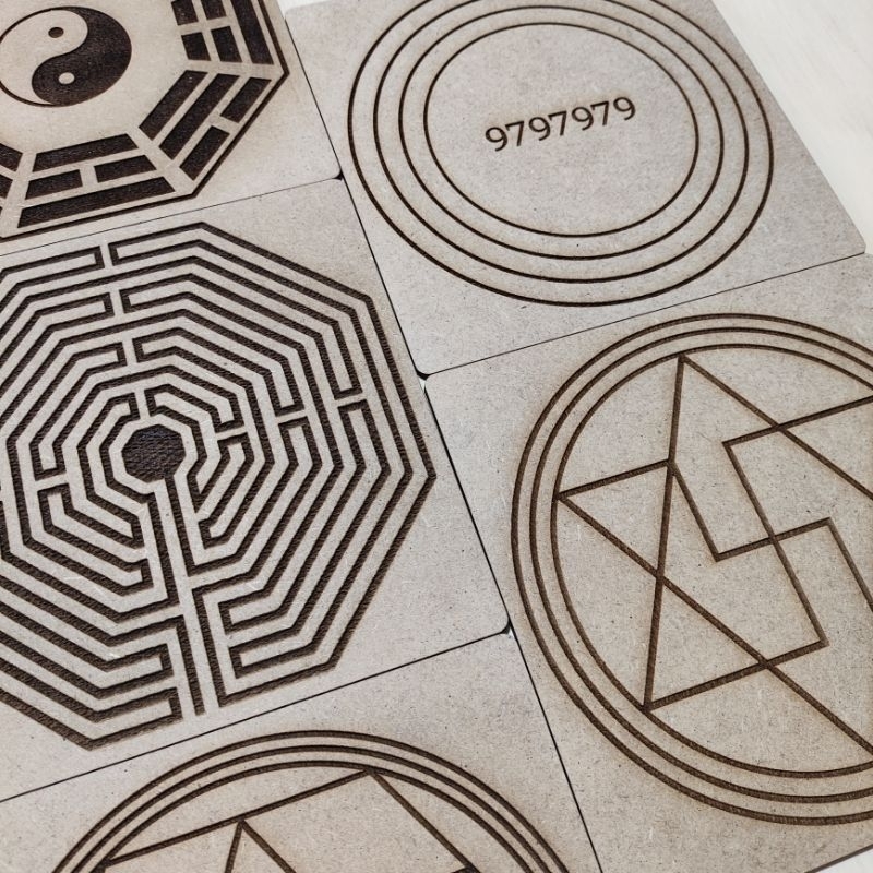 Kit de 20x20cm com 5, 10, 15 ou 20 Gráficos para Radiestesia em MDF cru de 3mm