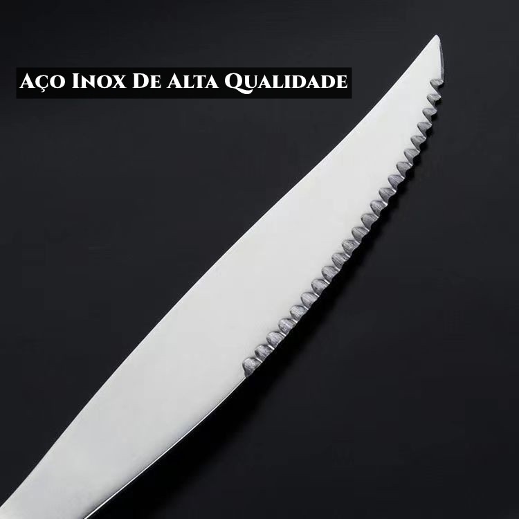 Jogo de Talheres Cozinha Aço Inox Talher Faca Garfo Grande Cabo Madeira de Serrilhada Faqueiro