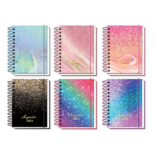 Agenda 2024 Espiral Capa Dura C/ Aplicação De Glitter Grande