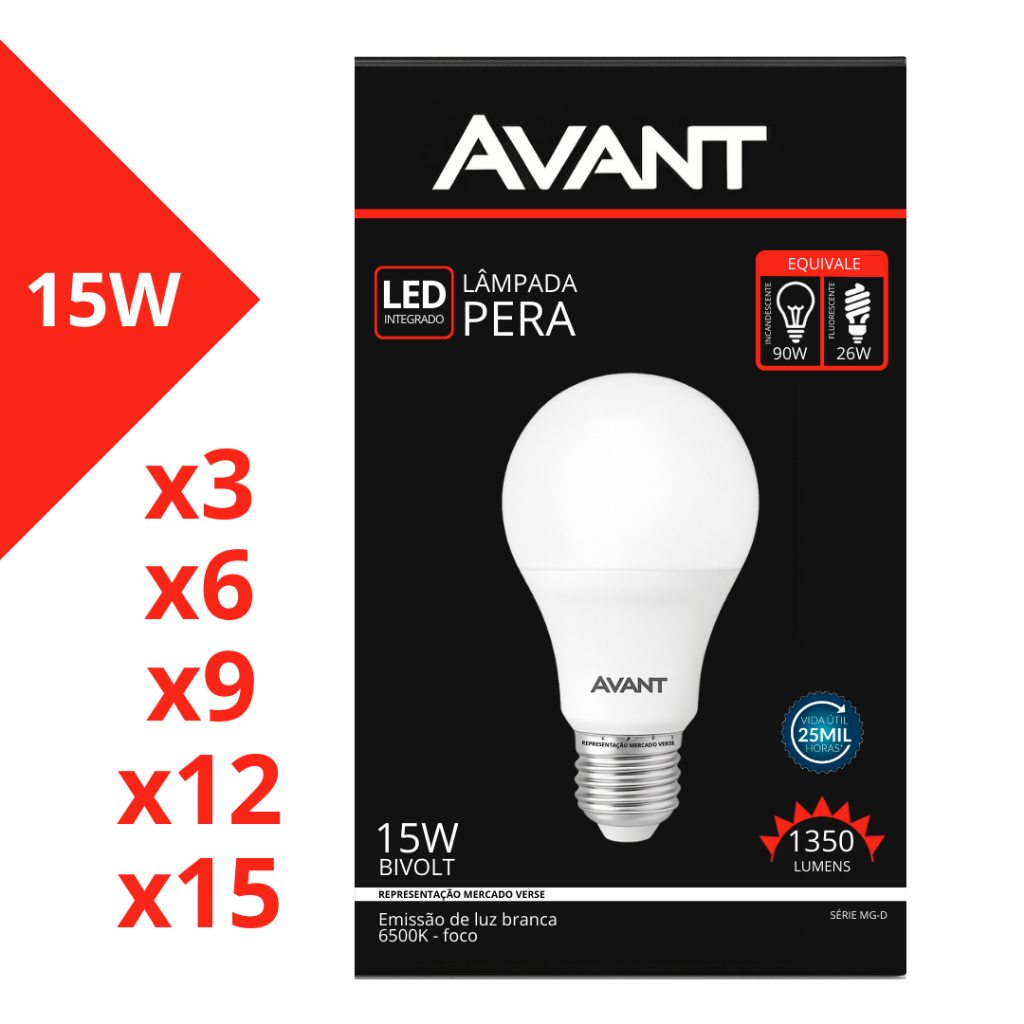 Kit Lâmpadas Led 15w Avant Bulbo E27 6500k Branco Frio 110/220v 1311 Lumens - Escolha Quantidade
