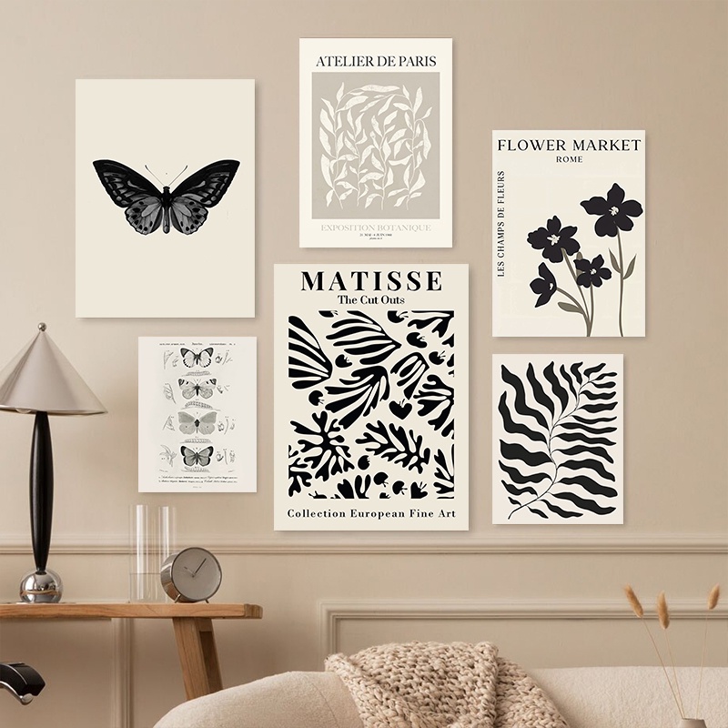Pôsteres Vintage Black Butterfly Flowers Abstract Matisse Wall Art Canvas Pinturas Nórdicas Interiores Sala De Estar Imagem Decoração Casa