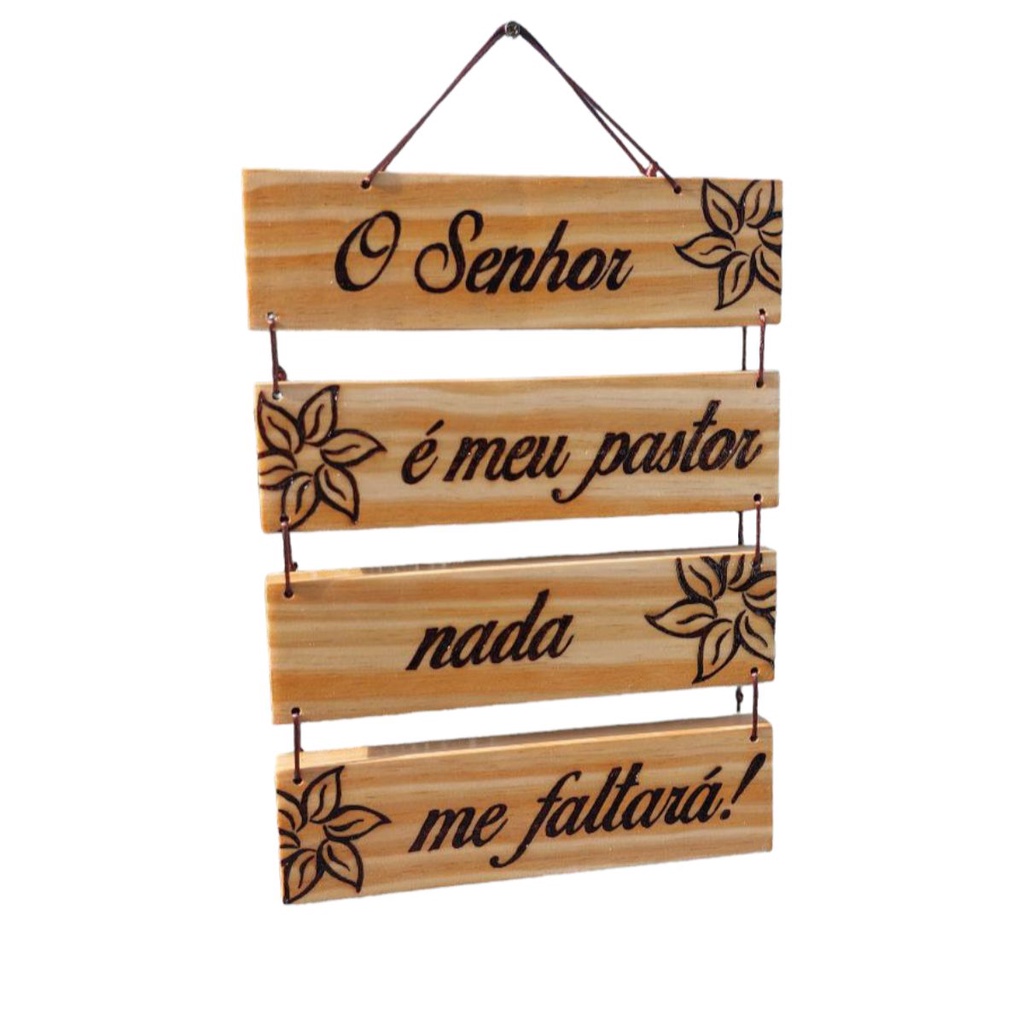 Quadro corda 4 Placas Decorativas O Senhor é meu pastor Madeira Maciça Pinus Pirografada (Personalizamos com a sua frase)