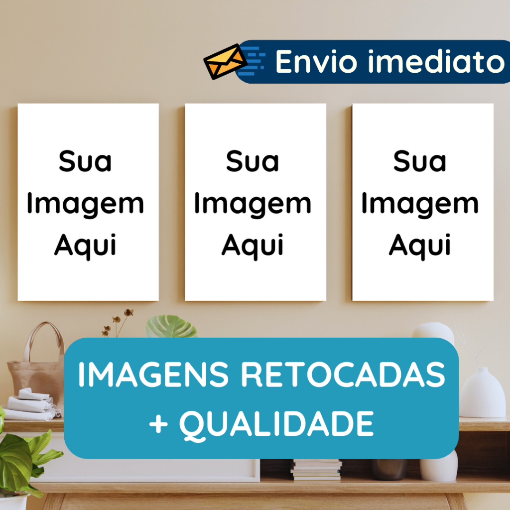 Kit 3 Placas Decorativas MDF Grande Personalizadas Com a Sua Imagem Quadro Decoração Parede