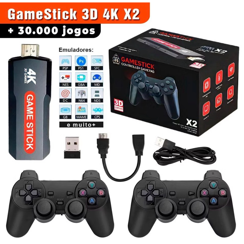 Video Game Stick 2 - Console 4k 64GB X2 37000 MIL Jogos + 2 Controles a Pronta Entrega Jogos Retrô