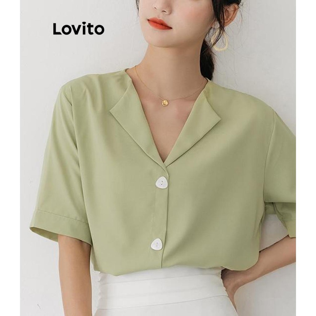 Lovito Blusa Feminina Casual Com Botões Lisos Na Frente LNE31201 (Branco)