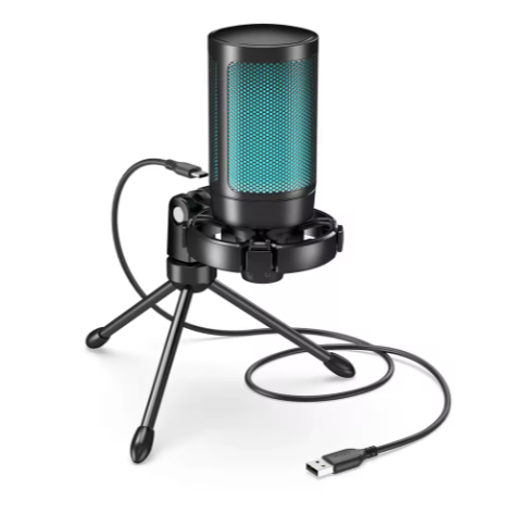 (Com pequeno defeito) FIFINE RGB USB Gaming Microphone com luz microfone condensador com tripé para PC