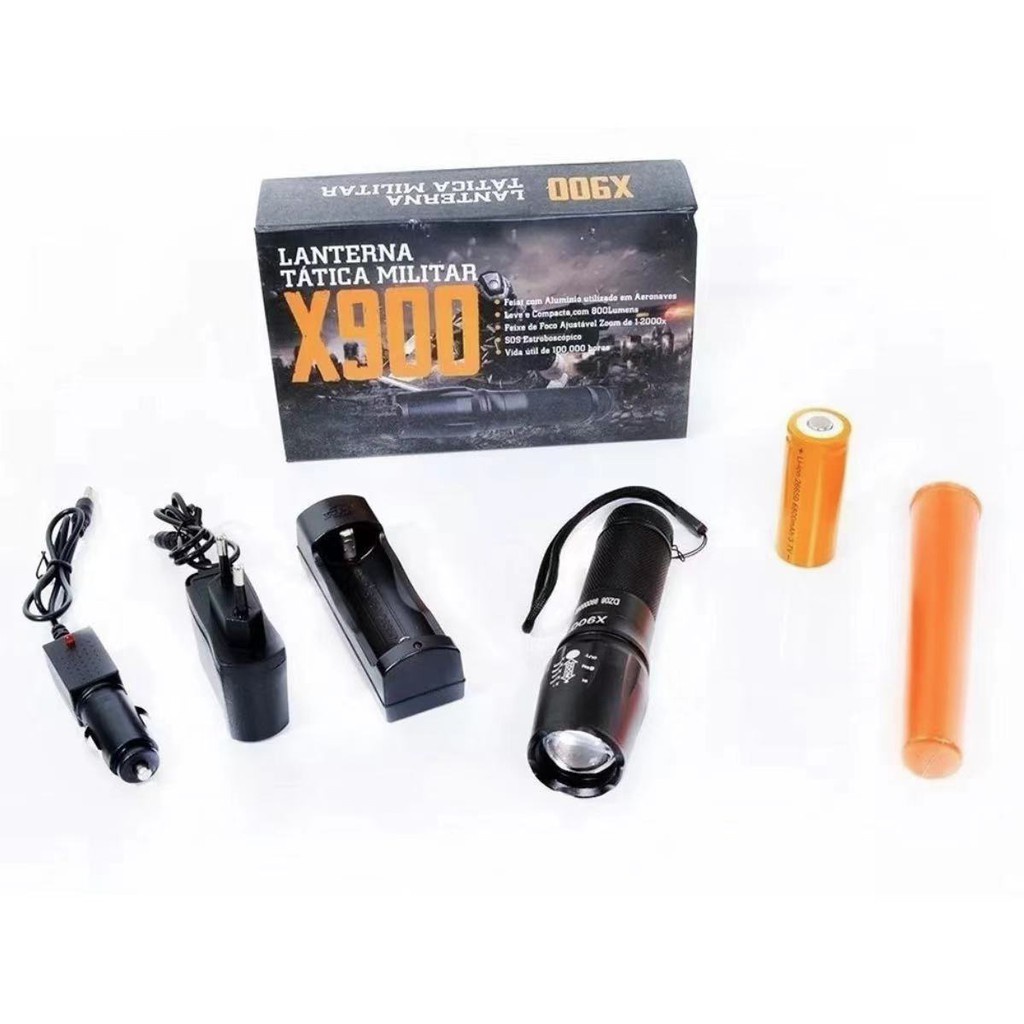 Lanterna Tática Police Q5 Recarregável Profissional Cree Led + 1 Bateria Reserva