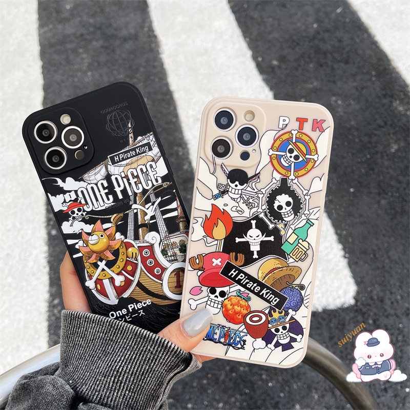 Capa De Telefone Cool One Piece Para iPhone 11 12 13 14 Pro MAX XS XR X 6 7 8 Plus 13 Mini-Estrutura Quadrada De Desenho Animado Japonês Anime Silicone À Prova De Choque TPU