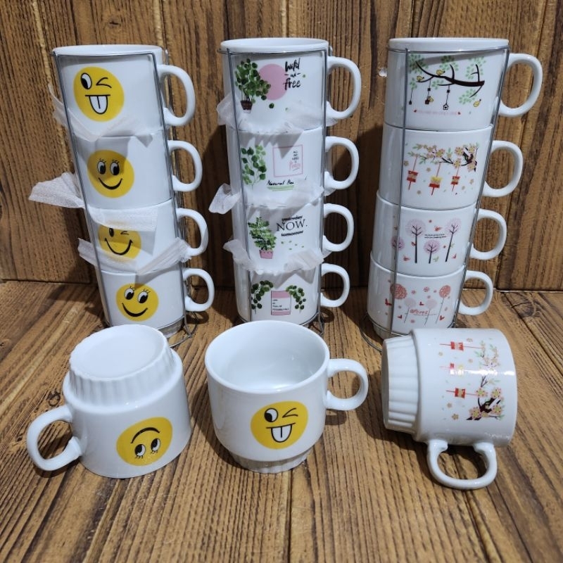 Jogo De Xícara Café Chá Com Suporte Kit 4 Canecas Poa