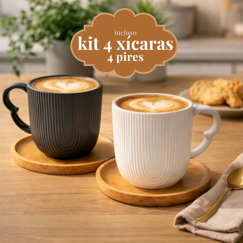 Xícara de Café Cerâmica com Pires 90ml Kit 4 Unidades Espresso Pequena Porcelana