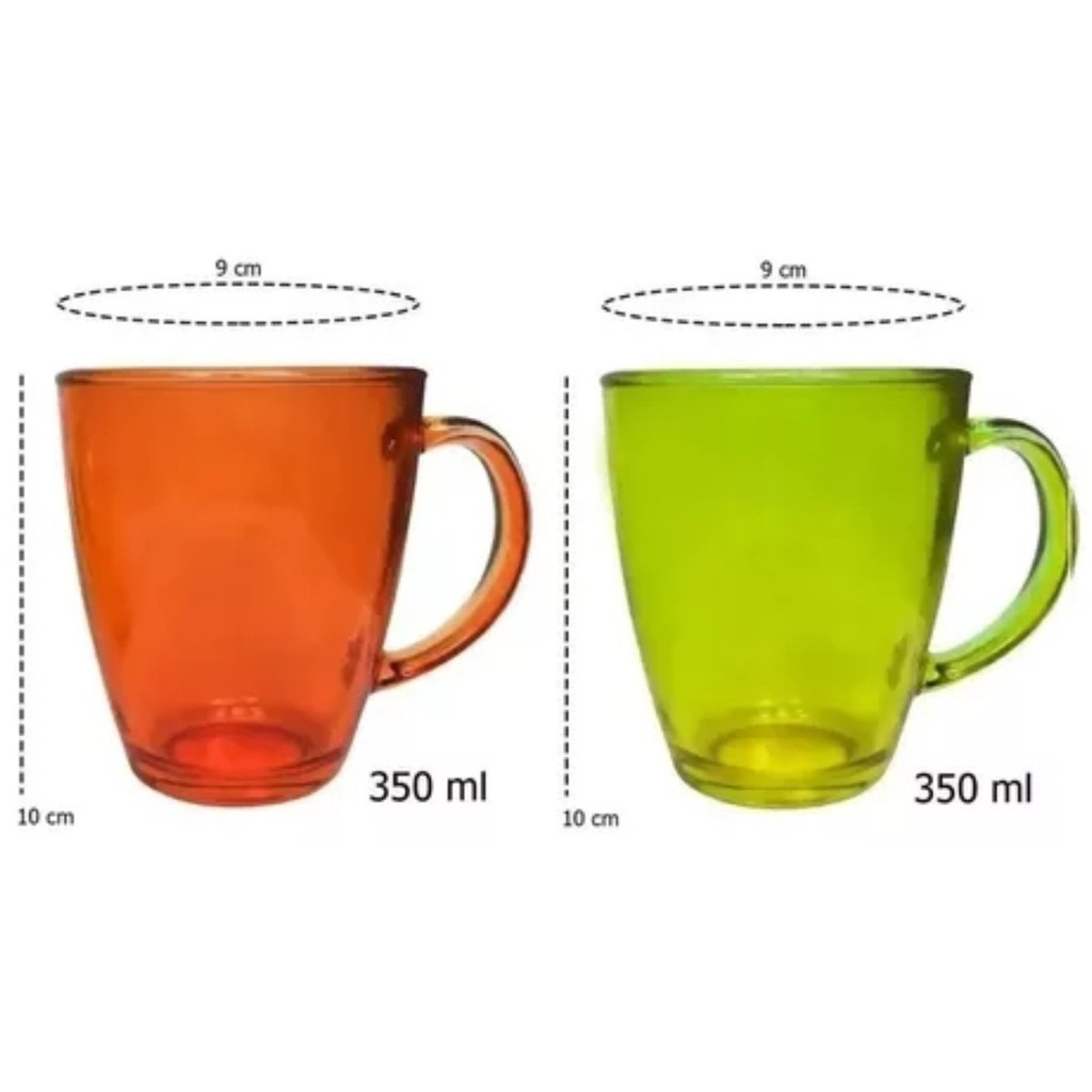 Jogo Kit De 4 Canecas De Vidro 350ml Coloridas Verona Café Chá Xícara
