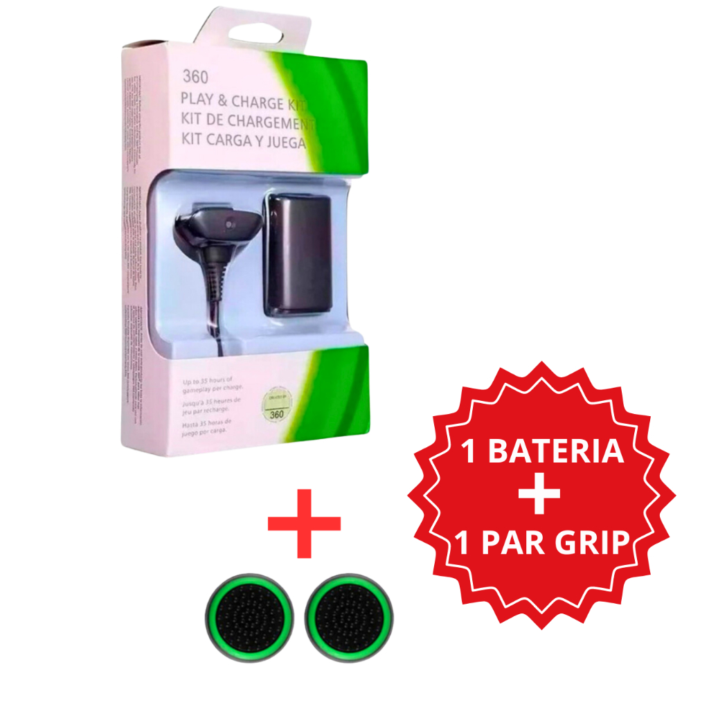 Kit 1 Bateria Carregador Controle Xbox 360 Slim Recarregavel Com Cabo Usb + 1 Par Grip