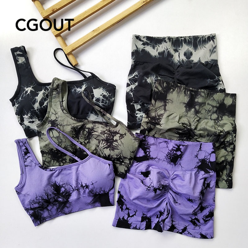 Tie Dye Sports Running Shorts Hip Lifting High Waist Yoga Calças De Ginástica Femininas Sem Costura