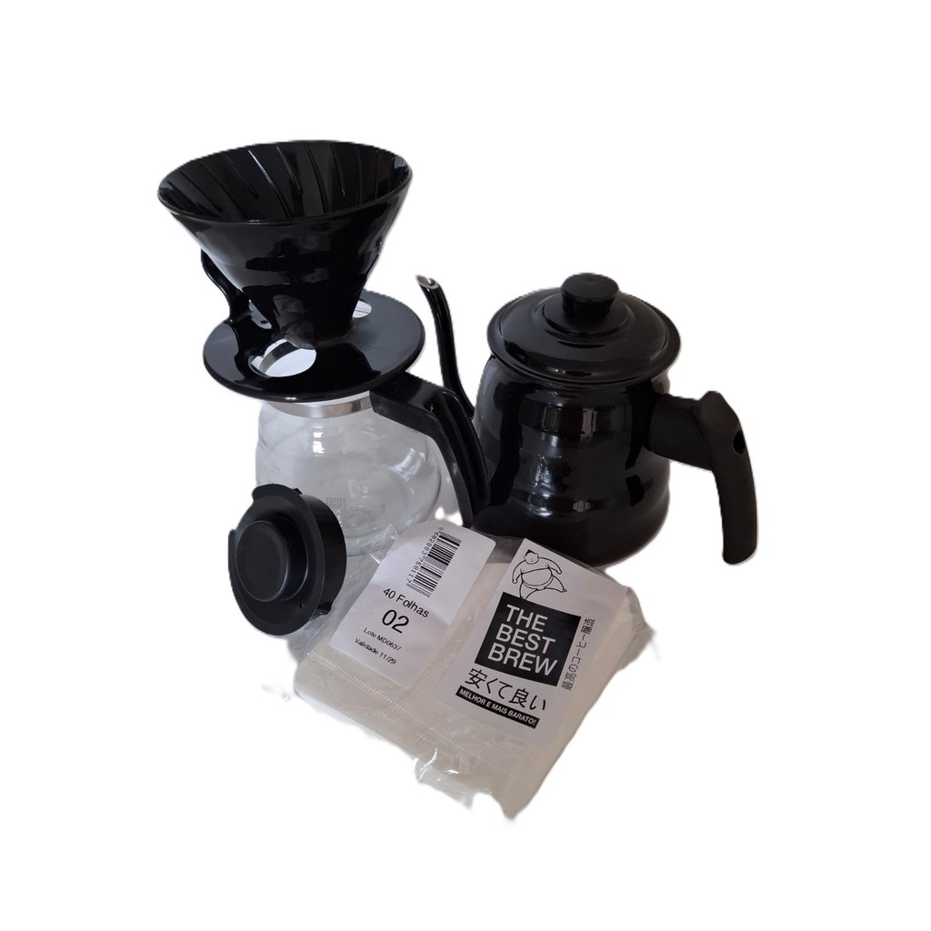 Kit de Preparo de Café V60 / 102 - Jarra de Vidro Borossilicato 800ml com Suporte de Filtro de Vidro