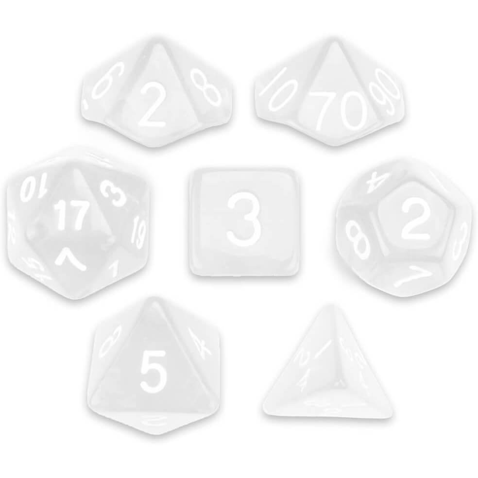 Conjunto com 7 Dados Translúcidos - Translucent Colorless Dice - Dados de RPG