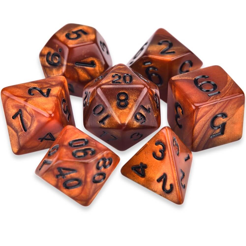 Conjunto com 7 Dados Perolados - Brown Pearl Dice Black Font - Dados de RPG