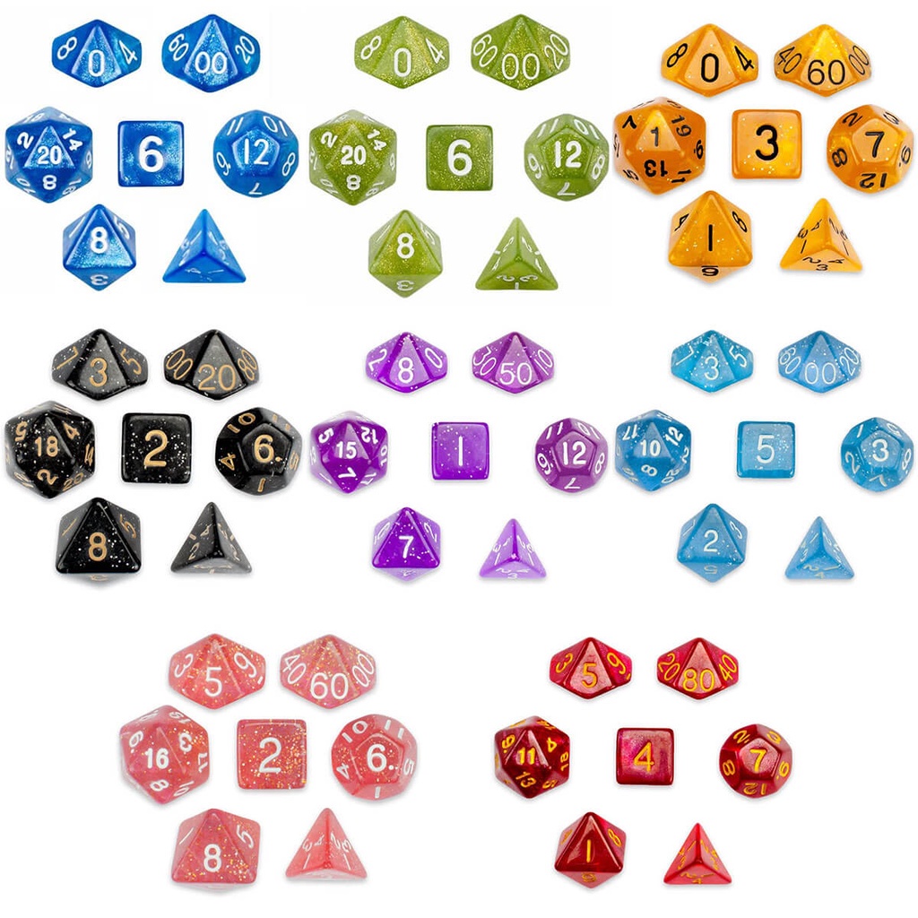 Conjunto com 7 Dados Glitter - Glitter Dice - Dados de RPG