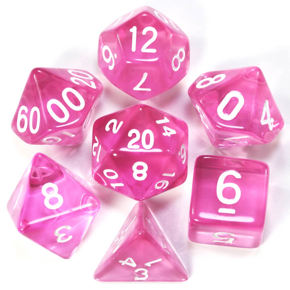 Conjunto com 7 Dados Translúcidos - Translucent Pink Dice - Dados de RPG