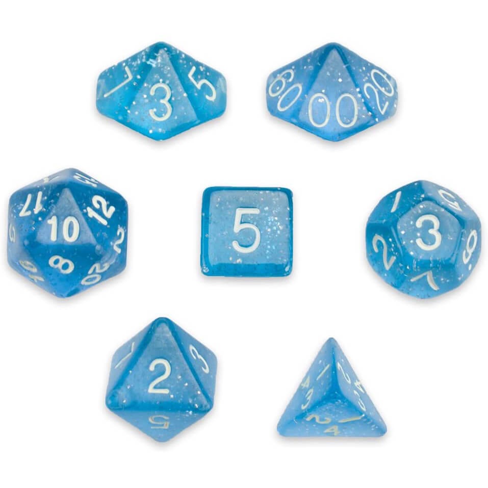 Conjunto com 7 Dados Glitter - Blue Glitter Dice - Dados de RPG
