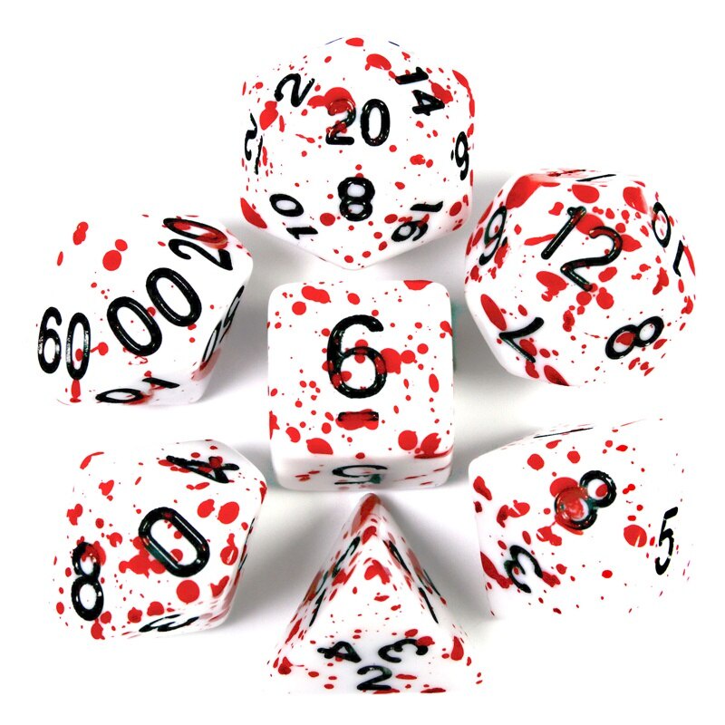 Conjunto com 7 Dados Respingos - Blood Splatter Dice - Dados de RPG
