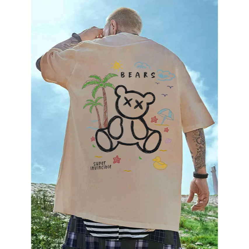 Camiseta Bear Coconut Oversized Estampa Urso Escrita Texto Frente Costas Bordado Ted Longline Old School Blusa Larga T-Shirt Aesthetic Unissex