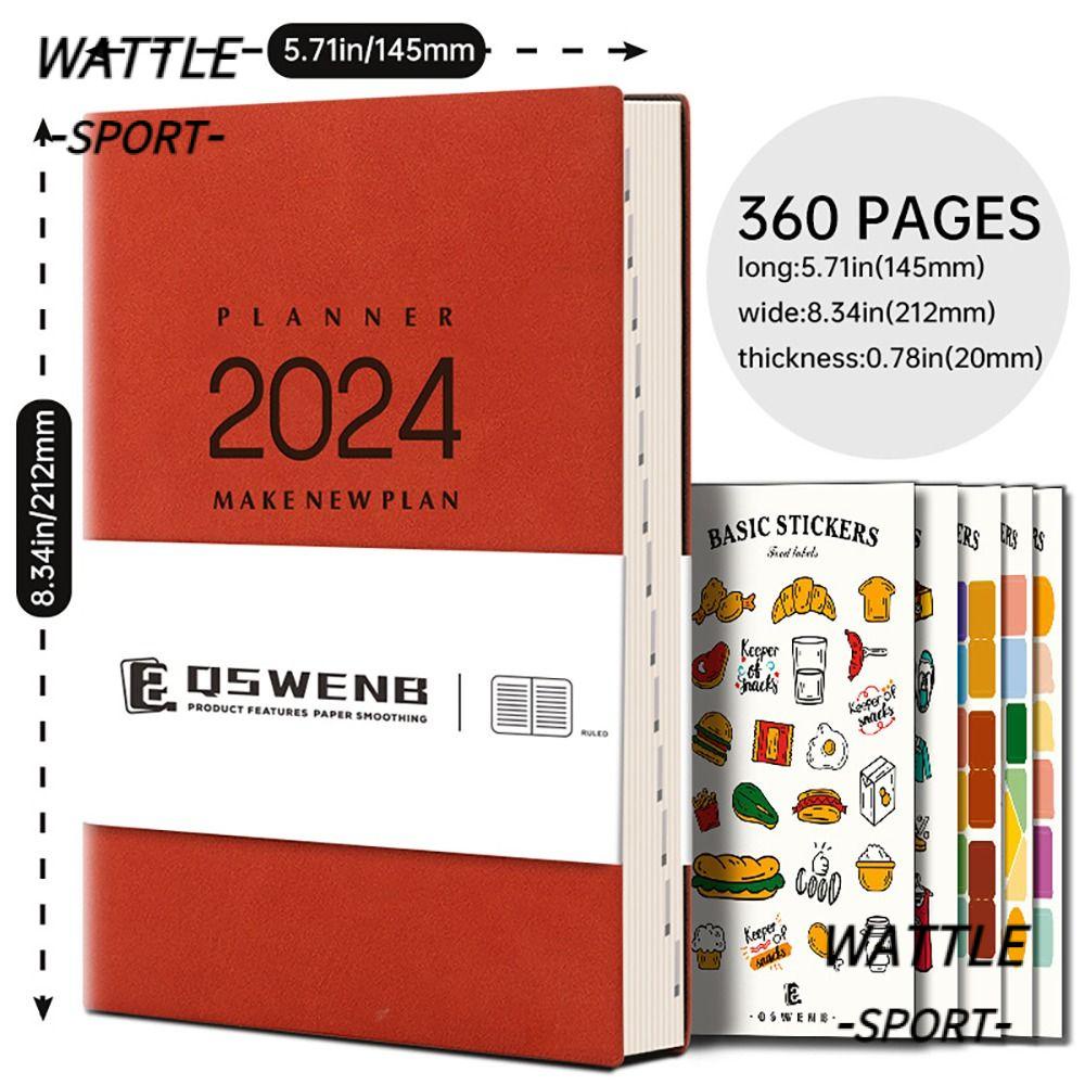 WATTLE Daily Planner , Agenda Diária Calendário Diário Plano De Trabalho , Capa Dura A5 Livro De Nomeações 2024