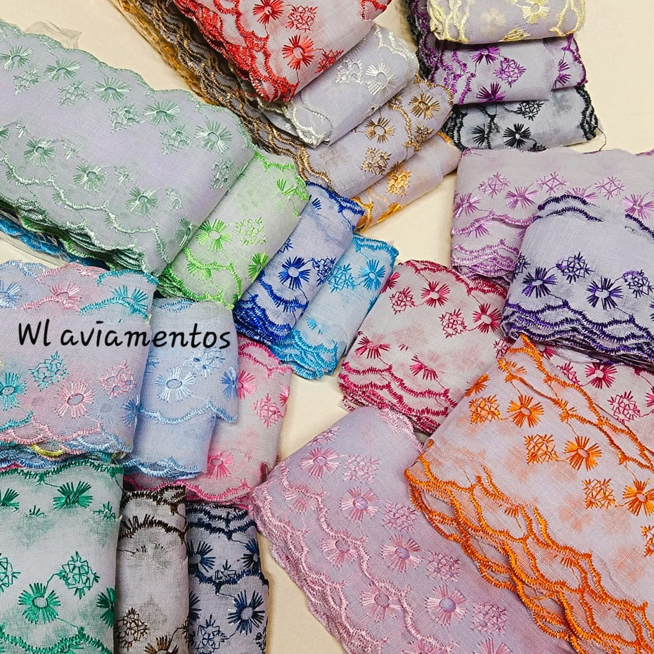 Bordado Inglês Lase Renda - Peça de 13,70 Metros com 5cm de Largura - Bordado ingles - Faixa Bordada - CTL134 - Laise - Lese - Acabamento