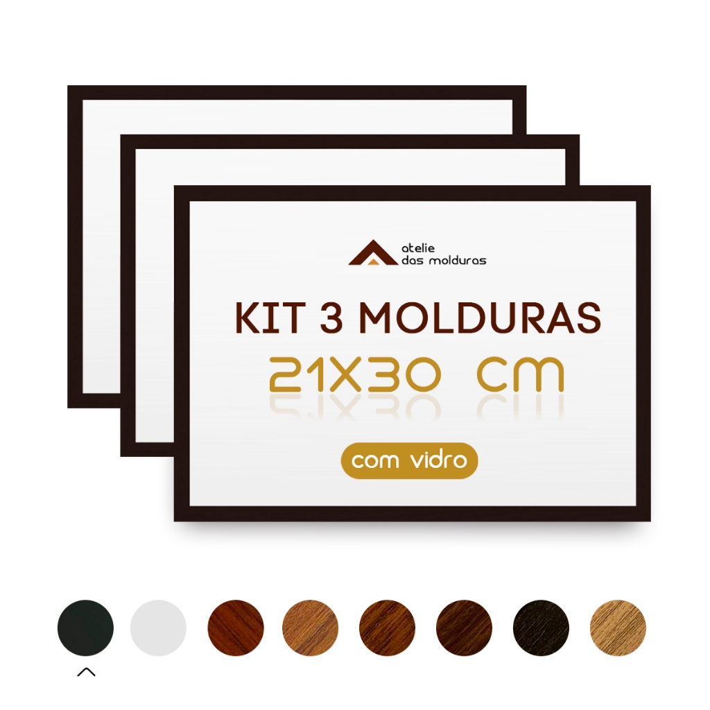 Kit 3 Moldura Quadro A4 20x30 Com Vidro Para Pôster Fotografia Certificado Caixa Alta
