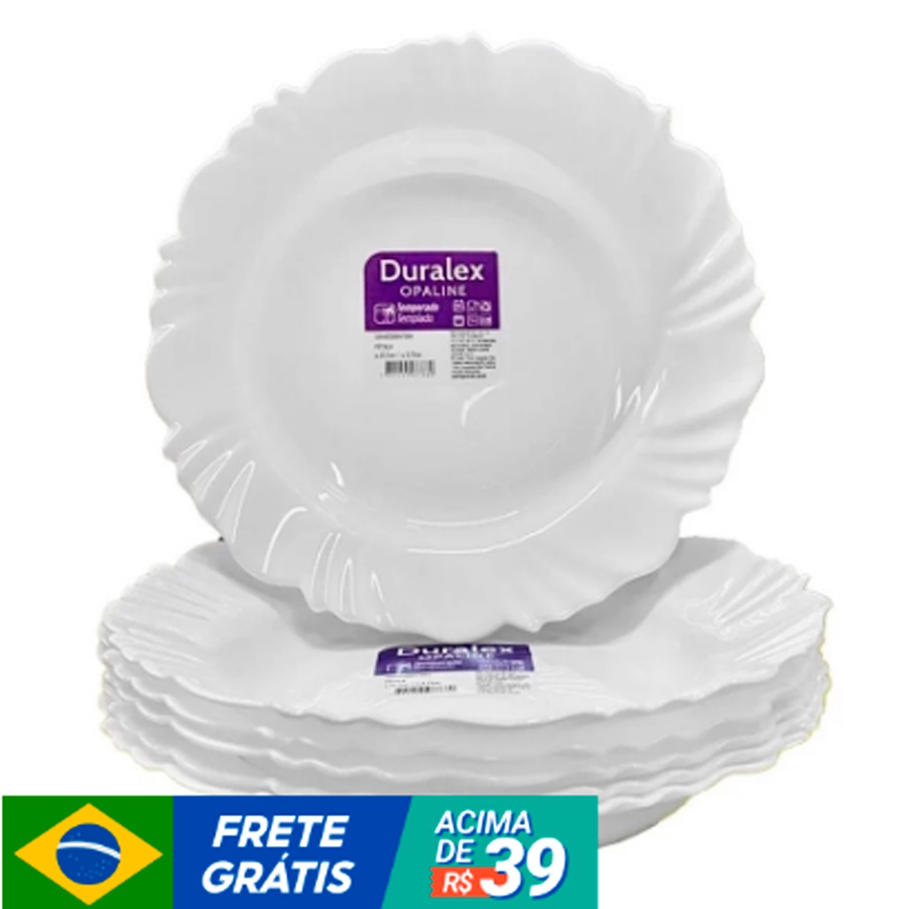 Jogo Kit 4/6/12 Pratos Fundo Menu Branco Vidro Opaline Jogo Jantar Duralex Redondo Conjunto Resistente Nadir Figueiredo Borda Ondulada Cozinha Porcelana Fundo Formato Almoço Platos