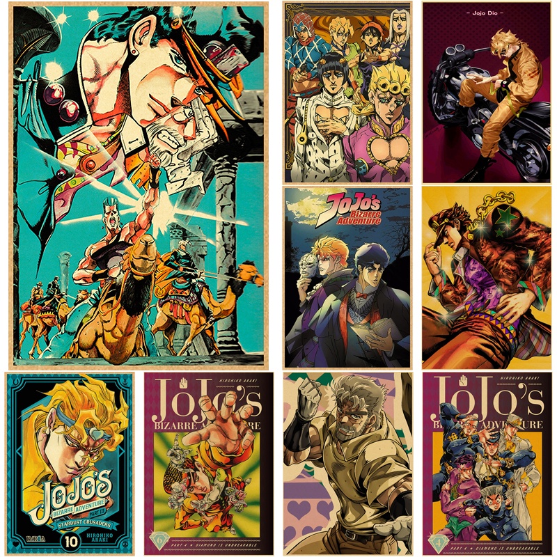 Clássico Anime JoJo Bizarre Adventure Poster Retro Papel Kraft Vintage Estética Quarto Home Bar Café Decoração Arte Presente Pintura De Parede
