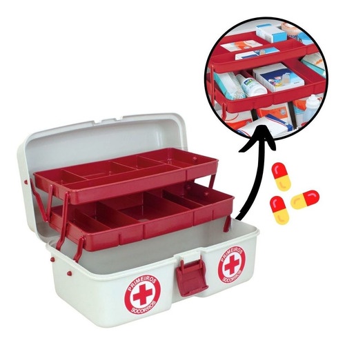 Caixa Organizadora Maleta Primeiros Socorros De Medicamentos C/2 Bandejas C/10 Divisorias com alça