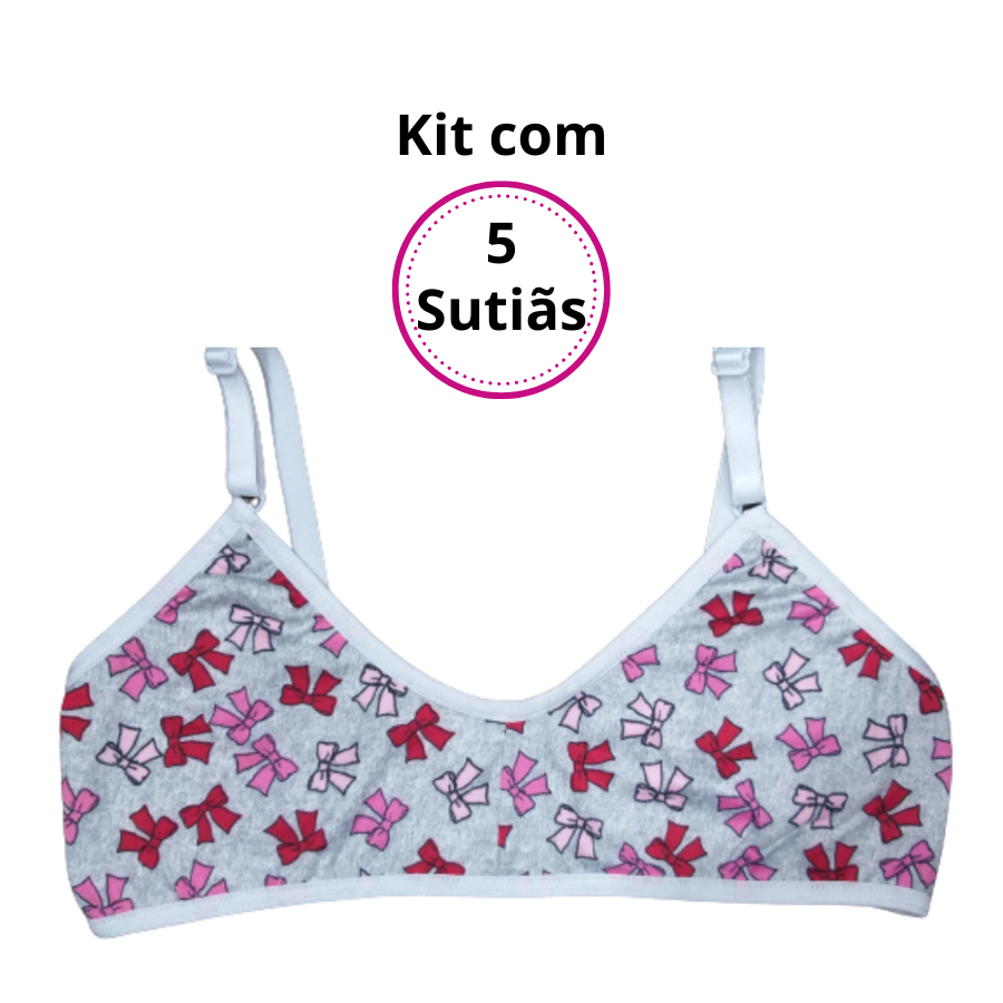 Kit 5 Sutiã Infantil Sem Bojo Menina Moça Juvenil Básico Dia a Dia Conforto