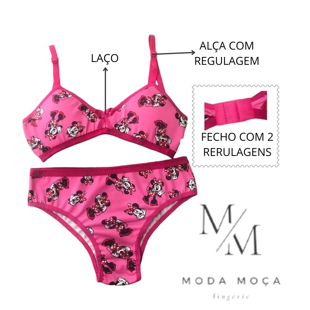 Promoção Kit 5 Conjunto Infantil Menina Moça Sutiã Espuma com Forro Calcinha Estampado