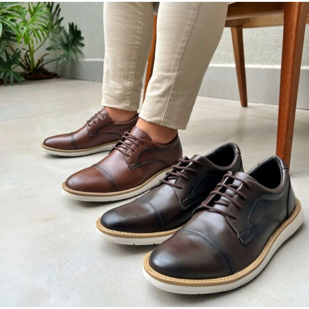Sapato Oxford Casual Masculino de Couro Sofisticado e Elegante palmilha Antiestresse na Promoção Envio Imediato