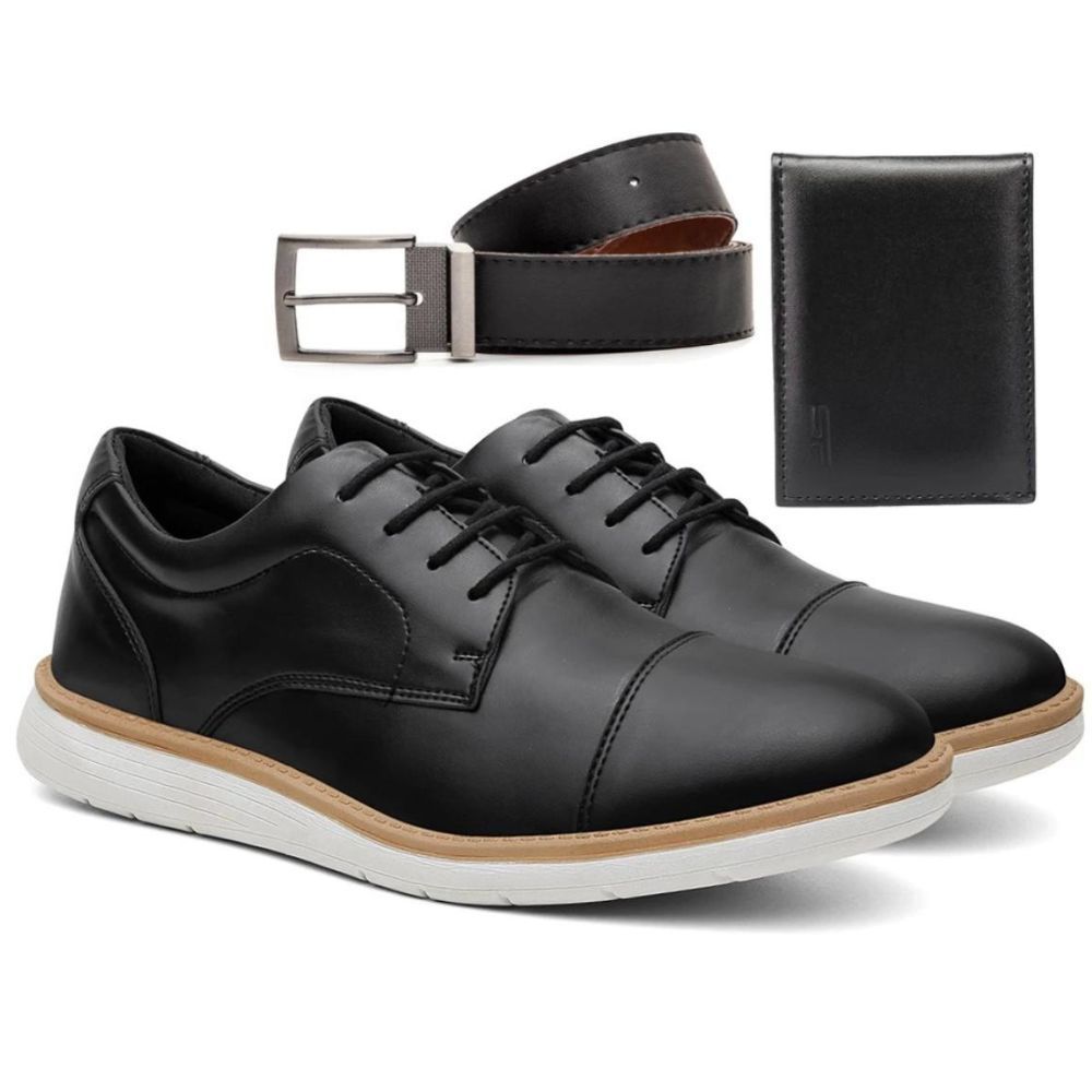Sapato Oxford De Couro Masculino Casual Social Esporte Fino Confortável Elegante + Carteira