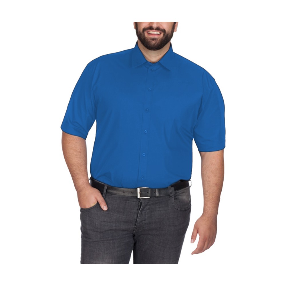 Camisa Social Masculina 100% Microfibra Manga Curta Plus Size Extra Grande Azul Bom Pano
