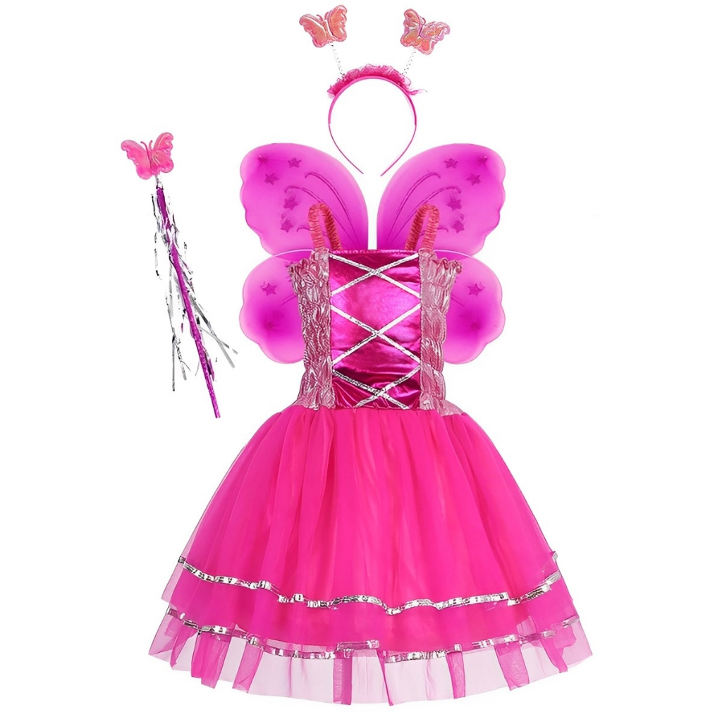 Fantasia Infantil Menina Princesa Vestido Varinha Tiara Borboleta Fada Kit 4pçs Festa Criança