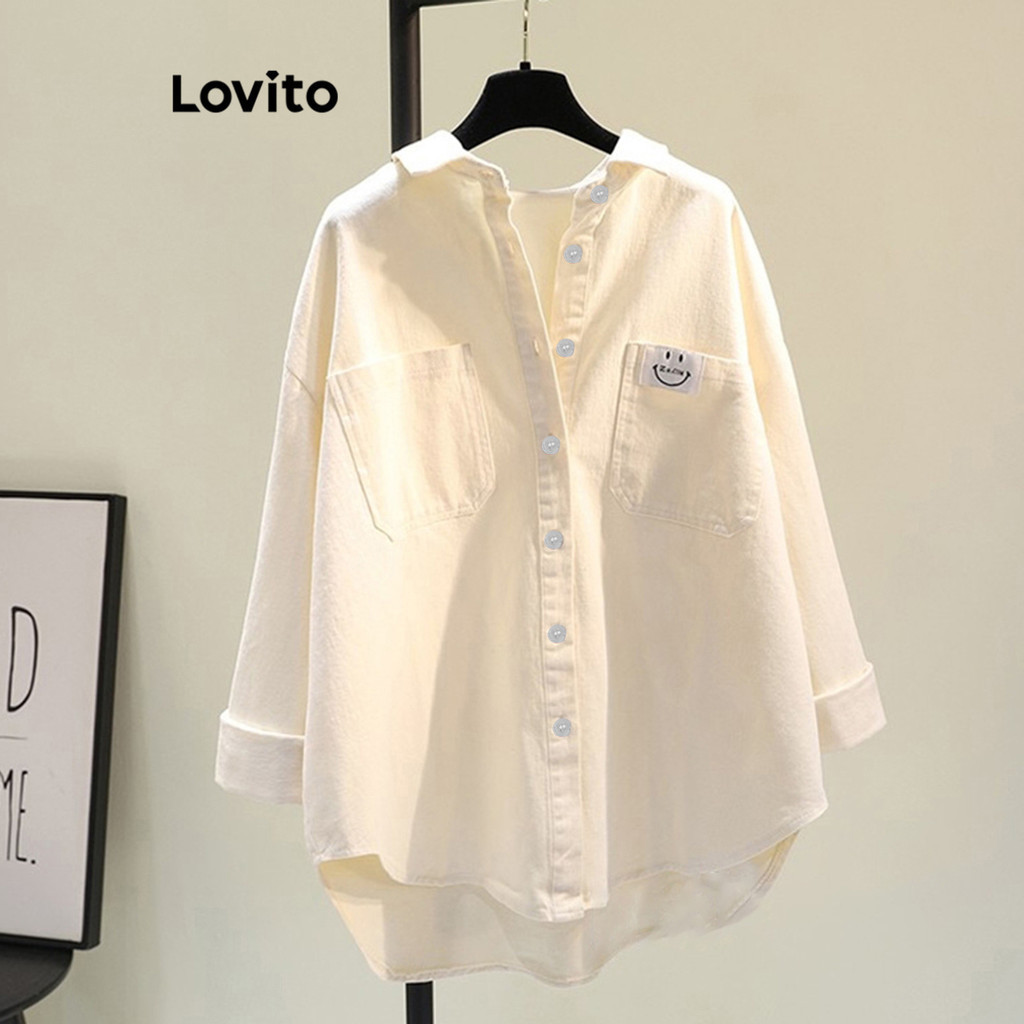 Lovito Casual Blusa Feminina Lisa com Botão e Bolso LNA14139 (Multicolorido)