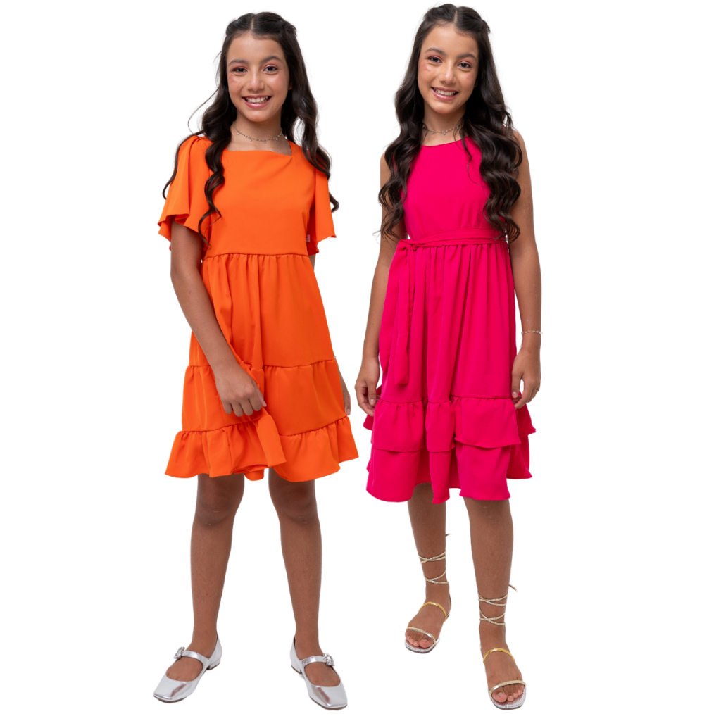 Kit 2 Vestidos Mid Infantil Menina Juvenil no tecido 4, 6, 8, 10, 12 e 14 anos cor lisa