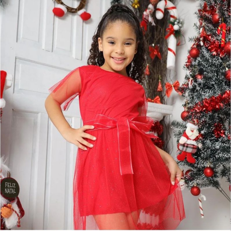Vestido Natal Festas Ano Novo Reveillón Fim De Ano Infantil Menina Rodado Moda Evangelica Midi Amarrar nas Costa Blogueirinha Blogueira Mini Diva Festa Casamento Formatura Luxo Fim De Ano