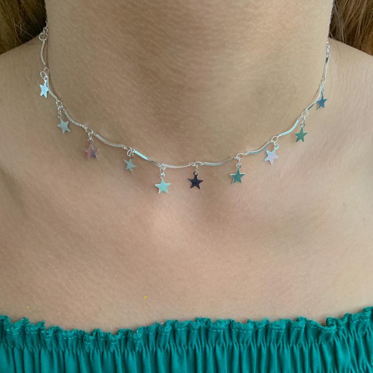 colar Gargantilha Choker feminina Estrelinha Estrela feminino Folheado A Prata 925
