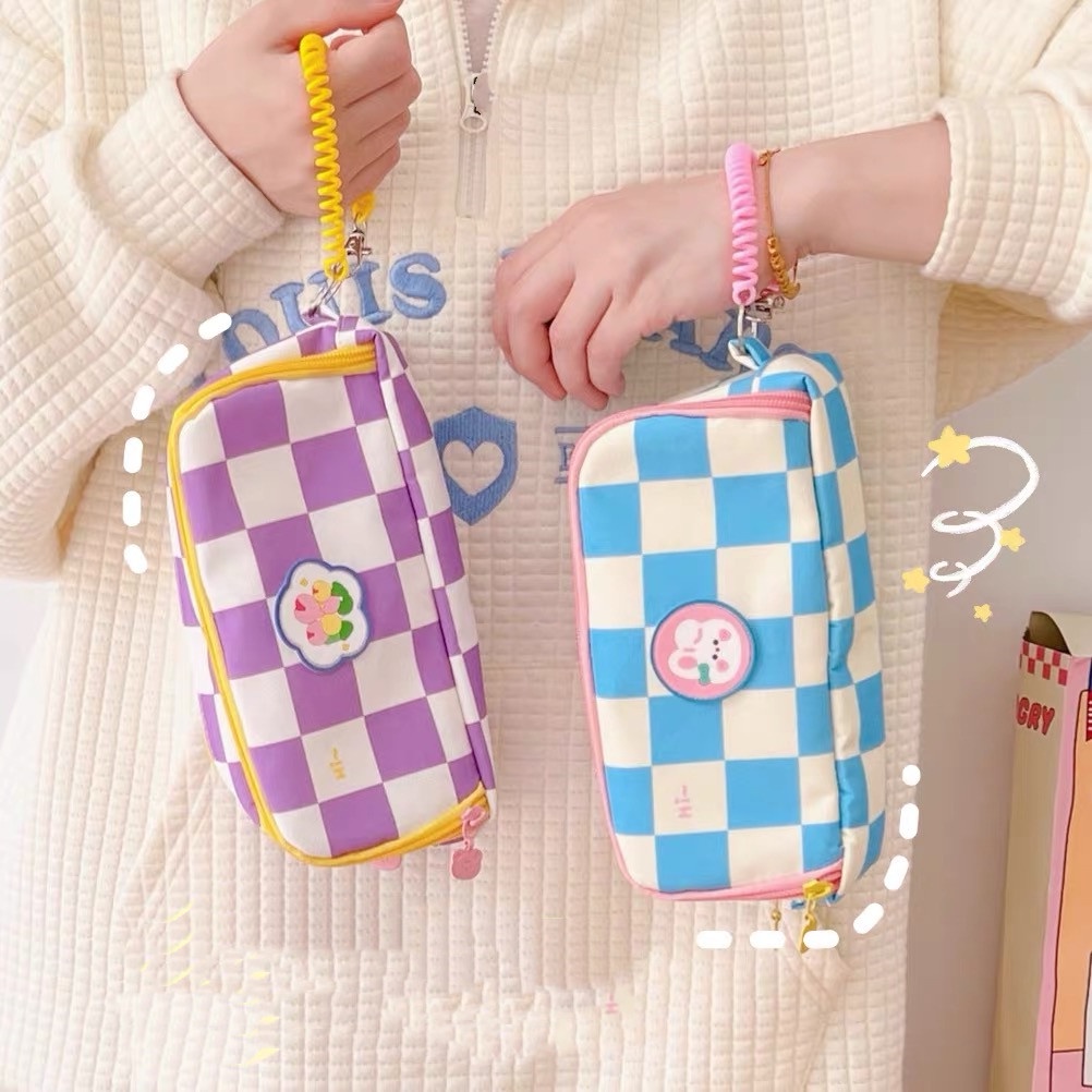 Estojo De Lápis De Grande Capacidade Kawaii Soft Cute Bag Pouch Bolsa Portátil Com Duas Camadas Para Estudantes Material De Escritório Escolar De Papelaria
