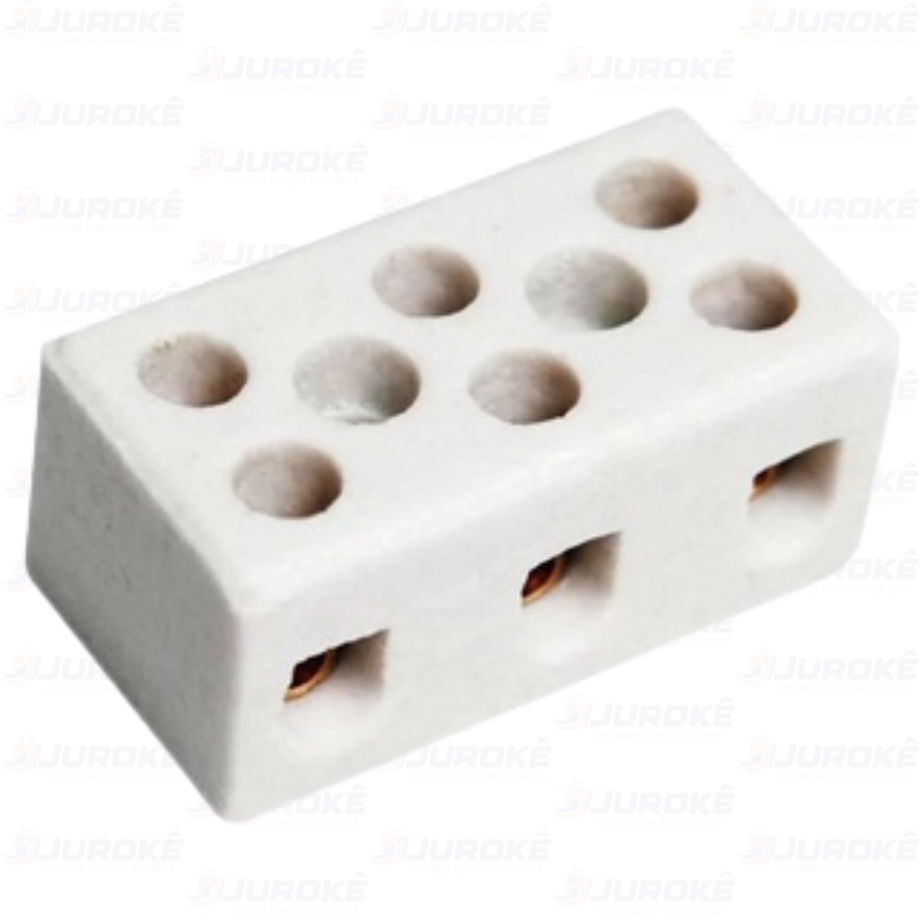 Conector De Porcelana 10mm 3 Polos Para Fios De Chuveiro