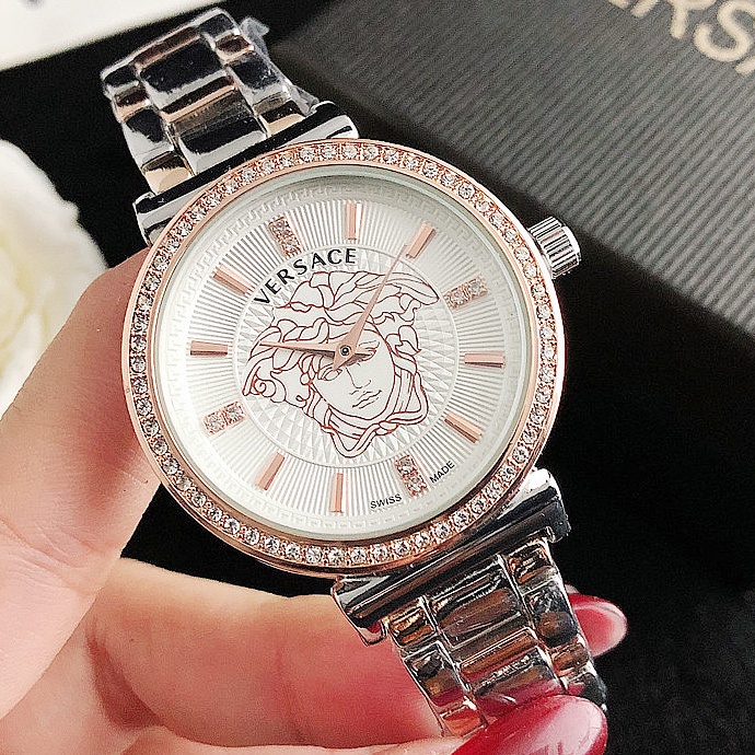 Relógio Feminino VERSAC Com Estampa Em Relevo Incrustada De Diamante E Pulseira De Aço Inoxidável 2022 Novo