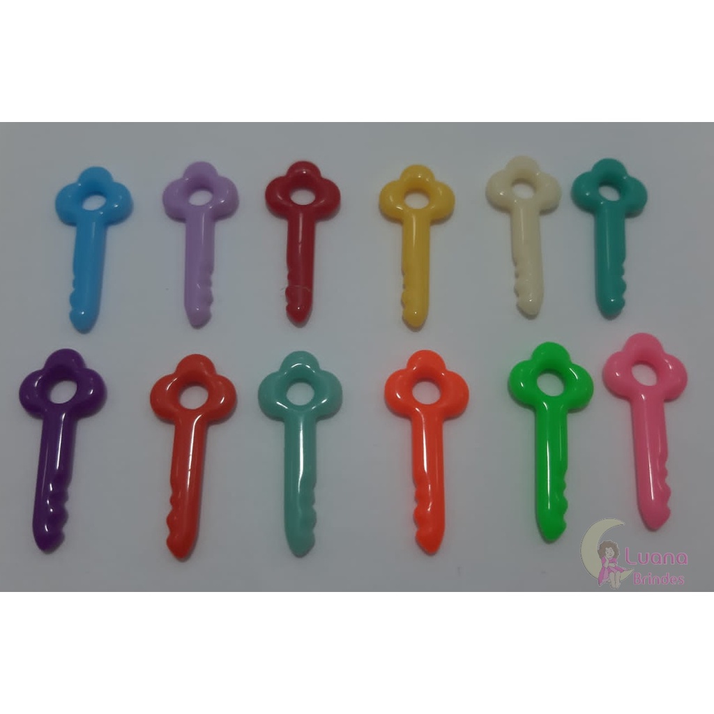 Pingente Chaves Coloridas de acrílico - pacote com 50 unidades.
