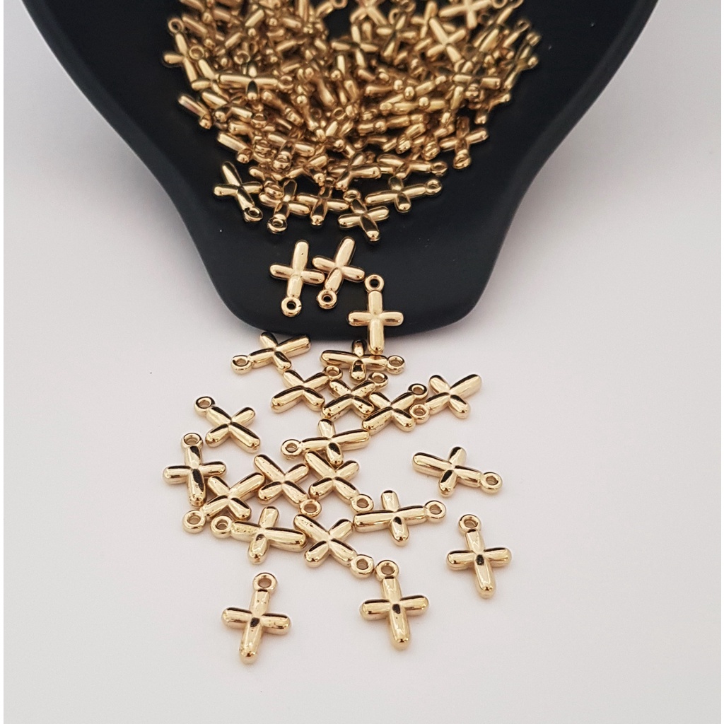 Pingente Cruz ABS 15x10mm Dourada Pacote com 50 Unidade - DIY Bijuterias