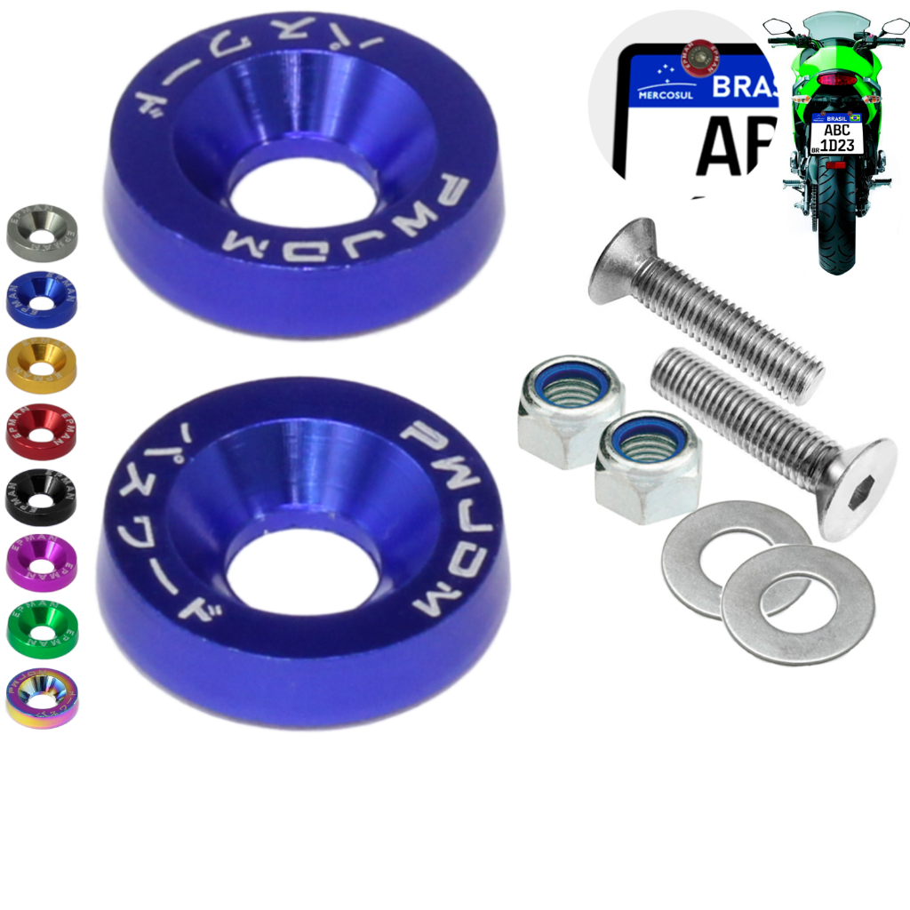 Parafuso Para Placa De Moto E Carro Kit c/ 2 Anilha Em Alumínio Rosca M6 Fender Washers