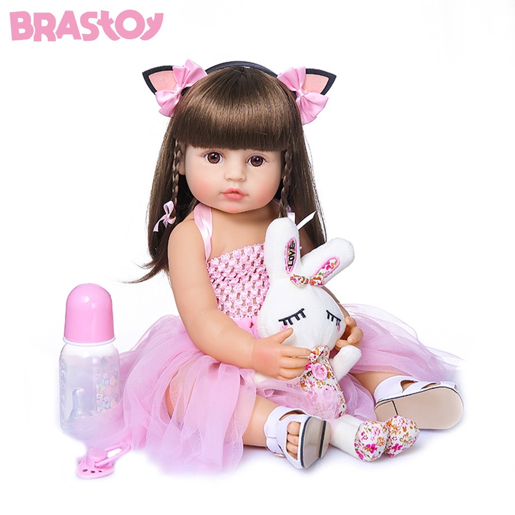Brastoy 55cm Boneca bebê reborn Menina 100% Silicone Pode Tomar Banho Coelho Rosa IG-520