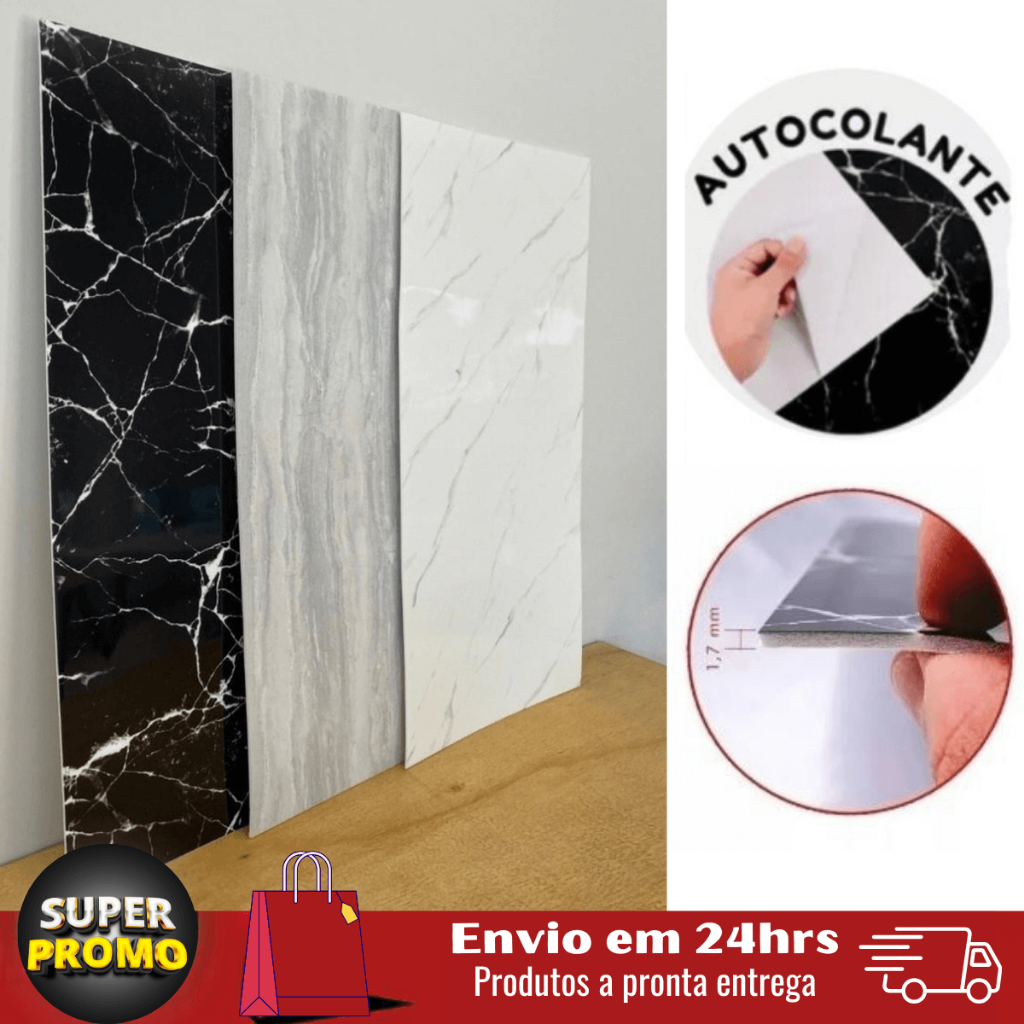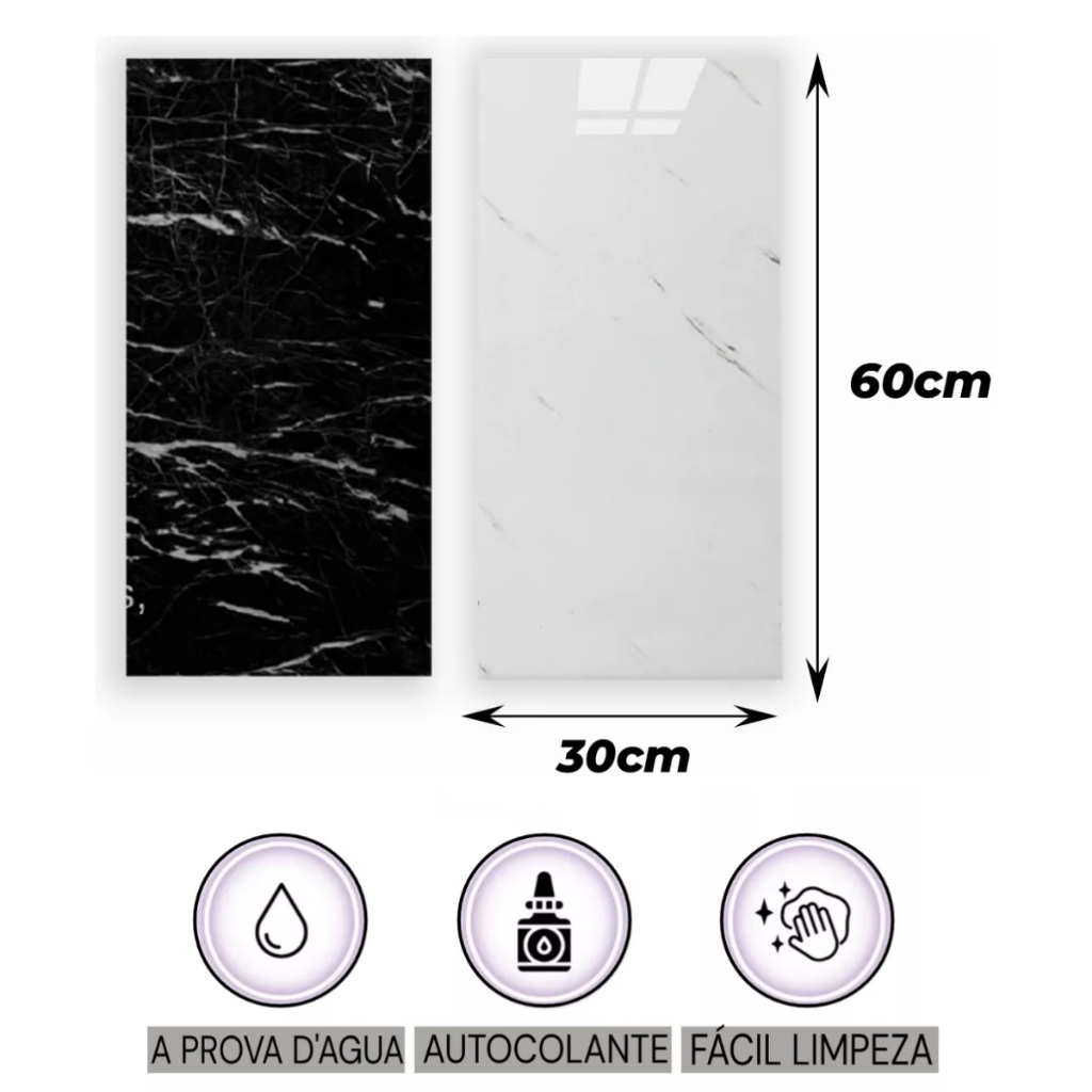 KIT 10 Placas Adesivas Efeito Mármore Porcelanato Vinílico 3D Parede Autocolante 30x60 Resistente